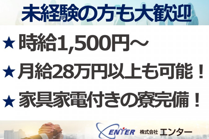 ※出張面接またはWeb面接も可能です! 「応募へ進む」又はお電話にてご応募ください。 ■電話からのご応募・お問い合わせ 株式会社エンター TEL:0566-91-7733 受付時間/10:00~17:00の間にお願いします。 ■WEBからのご応募 応募へ進むを押し、必要事項をご入力の上ご応募ください。 ⏩️【出張面接またはWeb面接も!】 場所はカフェや落ち着ける場所での実施もOK!リラックスできるカジュアル面談を心がけておりますので、堅苦しい雰囲気は一切なし。 お互いにリラックスしながら、お話しできればと思います。ぜひお気軽にご相談ください。 ⏩️【職場見学可能!】 入社する前に実際に働くスタッフ・会社をぜひ見学してください。 実際に勤務する場所を見ることによって安心してお仕事できると思います。 職場見学や面談を通し、不安を全て解消してから入社が可能です。 |