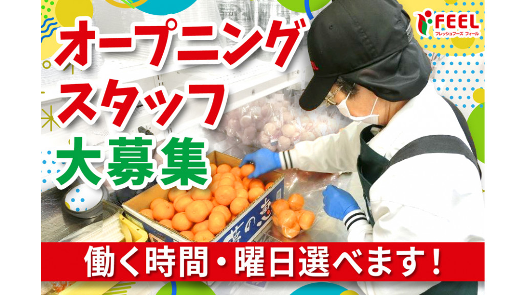 〜Webでかんたん応募(所要時間1分)〜 「応募画面に進む」をクリック!4項目を入れるだけで完了します! ✨新店舗のオープニングスタッフ大募集✨ \食品スーパーマーケット「FEEL」で働こう/ お野菜のパック詰めスタッフさん大募集! 【お仕事内容】 ・お野菜、果物のパック詰め ・商品の陳列 作業場内でのモクモク作業です。 難しい業務もないので、未経験の方もOK! オープニング募集だから、みんなイチからのスタートです✨ また、慣れてきたらカットフルーツ製造の仕事もあります。 果物の匂いに囲まれながら色とりどりの果物をカットし キレイに盛り付けていただきます。 マニュアルもあるので安心ですよ✨ 「あと20年くらい勤めたい!」など、 長期に渡り勤められる会社をお探しの 40代、50代の方にもオススメです✨ ============= ⭕FEELの魅力⭕ ============= ▷業界業種未経験でもOK! ▷シフトしっかり安定収入! ▷残業もありません! ✅扶養内勤務OK ✅フルタイム勤務もOK(社保加入OK) ✅交通費規定支給 ✅ご家庭の事情にも柔軟に対応 ✅社食の手作りごはんでおなかいっぱい!(260円) ✅安心の研修制度あり など、働きやすい環境が整っています! ============== 自分らしく働こう! ============== FEELにはいろいろな部門があります。 ■精肉 ■水産(生魚、干物など) ■農産(野菜、果物など) ■デリカ(お惣菜など) ■ベイク(焼き立てパン) ■一般食品(非生鮮食品) ■社員食堂 ■レジ あなたにぴったりの場所が見つかります! どうぞお気軽にご相談ください✨ 【求人ID-OFL】 |