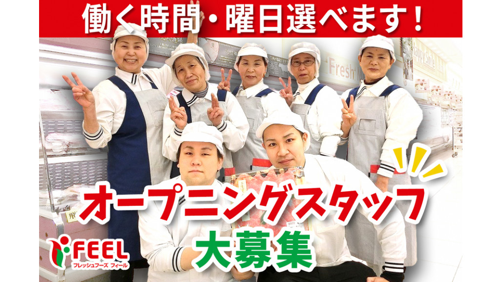 | 職種名 | オープニング 食品スーパーフィールのお肉パック詰めスタッフ シフト制 フルタイム可 車通勤可 |