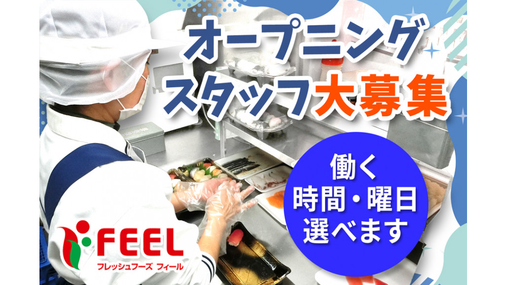 〜Webでかんたん応募(所要時間1分)〜 「応募画面に進む」をクリック! 4項目を入れるだけで完了します! ✨新店舗のオープニングスタッフ大募集✨ \食品スーパーマーケット「FEEL」で働こう/ お寿司の製造スタッフさん大募集! 【お仕事内容】 ・寿司製造(マニュアルあり) ・商品の陳列 シャリはロボットが作ります! ネタは社員が切ります! 合わせてパックに詰めて完成! 他にも、巻き寿司、ちらし寿司、 海鮮丼も恵方巻も習得できちゃいます! (家でオリジナルを作れるようになる!) オープニング募集だから、みんなイチからのスタートです✨ 未経験orブランクがあって心配な方でも安心✨ ============= ⭕FEELの魅力⭕ ============= ▷業界業種未経験でもOK! ▷シフトしっかり安定収入! ▷残業もありません! ✅扶養内勤務OK ✅フルタイム勤務もOK(社保加入OK) ✅交通費規定支給 ✅ご家庭の事情にも柔軟に対応 ✅社食の手作りごはんでおなかいっぱい!(260円) ✅安心の研修制度あり など、働きやすい環境が整っています! ================== ⭕FEELで楽しく働こう⭕ ================== ・同世代の友達の輪が広がる! ・安くて美味しい社員食堂アリ! ・スキマ時間に効率的に稼げる! 仕事も、家庭も、プライベートも、 「FEEL」で働きながら充実させてみませんか✨ 「レジは苦手だけど品出しは好き」 「自分は縁の下の力持ちタイプだ」 「働きやすい職場でバイトデビューしたい」 そんなあなたにもピッタリ! どうぞお気軽にご相談ください✨ 【求人ID-UFL】 |