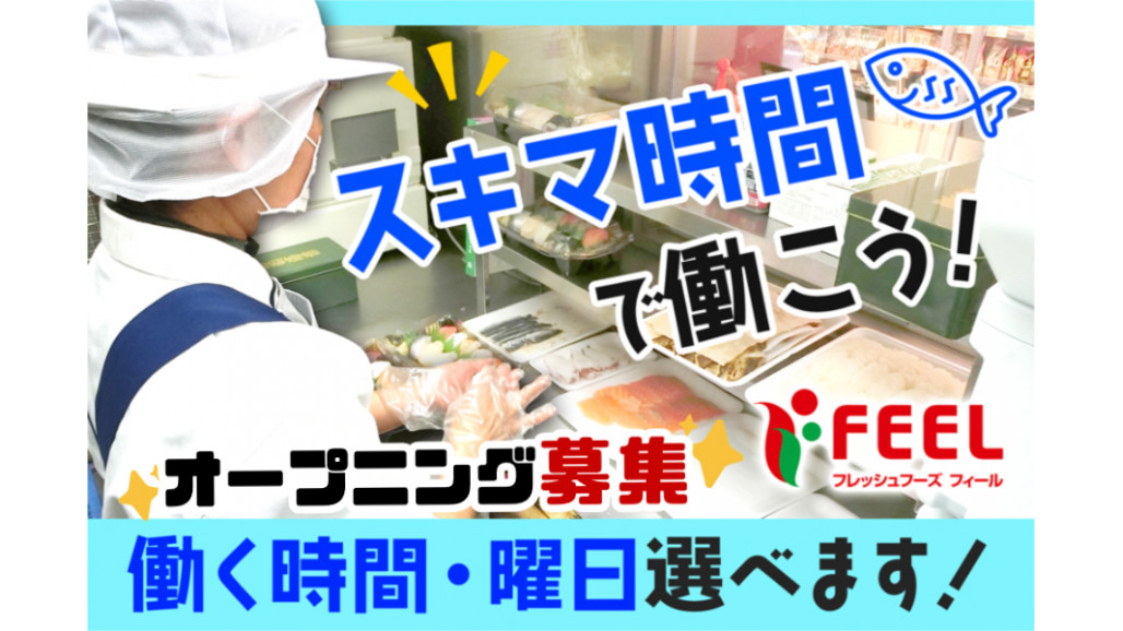〜Webでかんたん応募(所要時間1分)〜 「応募画面に進む」をクリック! 4項目を入れるだけで完了します! ✨新店舗のオープニングスタッフ大募集✨ \食品スーパーマーケット「FEEL」で働こう/ パート・アルバイトスタッフさん大募集! 【お仕事内容】 ・寿司製造(マニュアルあり) ・商品の陳列 シャリはロボットが作ります! ネタは社員が切ります! 合わせてパックに詰めて完成! 他にも、巻き寿司、ちらし寿司、 海鮮丼も恵方巻も習得できちゃいます! (家でオリジナルを作れるようになる!) オープニング募集だから、みんなイチからのスタートです✨ 未経験orブランクがあって心配な方でも安心✨ ============= 〇FEELの魅力〇 ============= ▷業界業種未経験でもOK! ▷シフトしっかり安定収入! ▷残業もありません! ✅扶養内勤務OK ✅フルタイム勤務もOK(社保加入OK) ✅交通費規定支給 ✅ご家庭の事情にも柔軟に対応 ✅社食の手作りごはんでおなかいっぱい!(260円) ✅安心の研修制度あり など、働きやすい環境が整っています! ================== 〇FEELで楽しく働こう〇 ================== ・同世代の友達の輪が広がる! ・安くて美味しい社員食堂アリ! ・スキマ時間に効率的に稼げる! 仕事も、家庭も、プライベートも、 「FEEL」で働きながら充実させてみませんか✨ 「レジは苦手だけど品出しは好き」 「自分は縁の下の力持ちタイプだ」 「働きやすい職場でバイトデビューしたい」 そんなあなたにもピッタリ! どうぞお気軽にご相談ください✨ 【求人ID-MFL】 |
