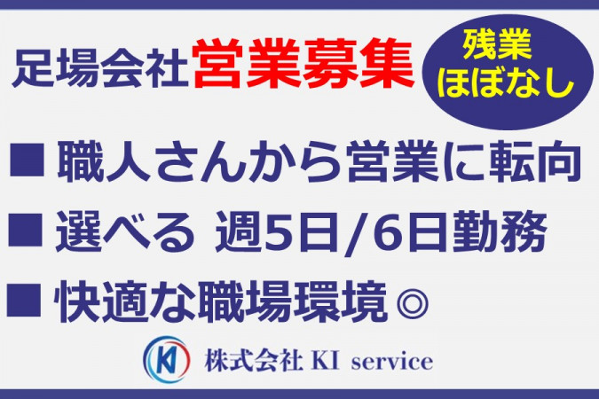 職種名 | 足場営業スタッフ 経験者必見 残業ほぼなし |