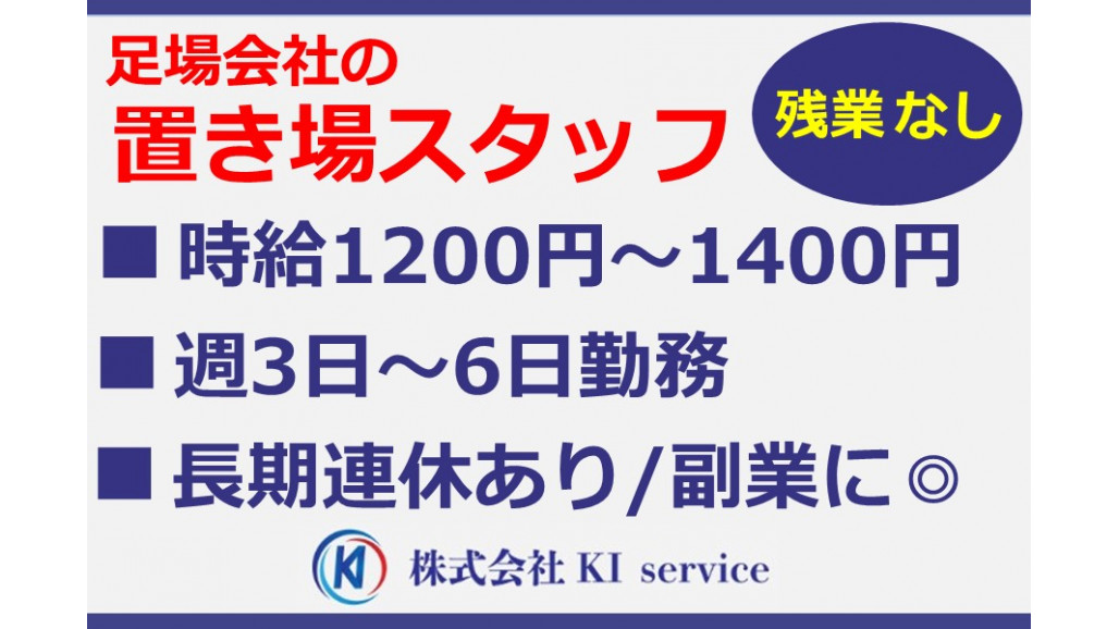 | 職種名 | 足場工事会社での置き場スタッフ 未経験可 週3日~の勤務〇 |
