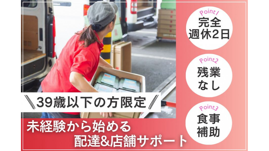 | 職種名 | 事業所用給食の配達員 店舗運営アシスタント・完全週休2日制・食事補助 |