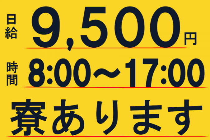能力に応じて昇給あります 始めは日給9,500円~スタート! ⭐21日出勤/月 9,500円×22日=209,000円+交通費全額支給 |