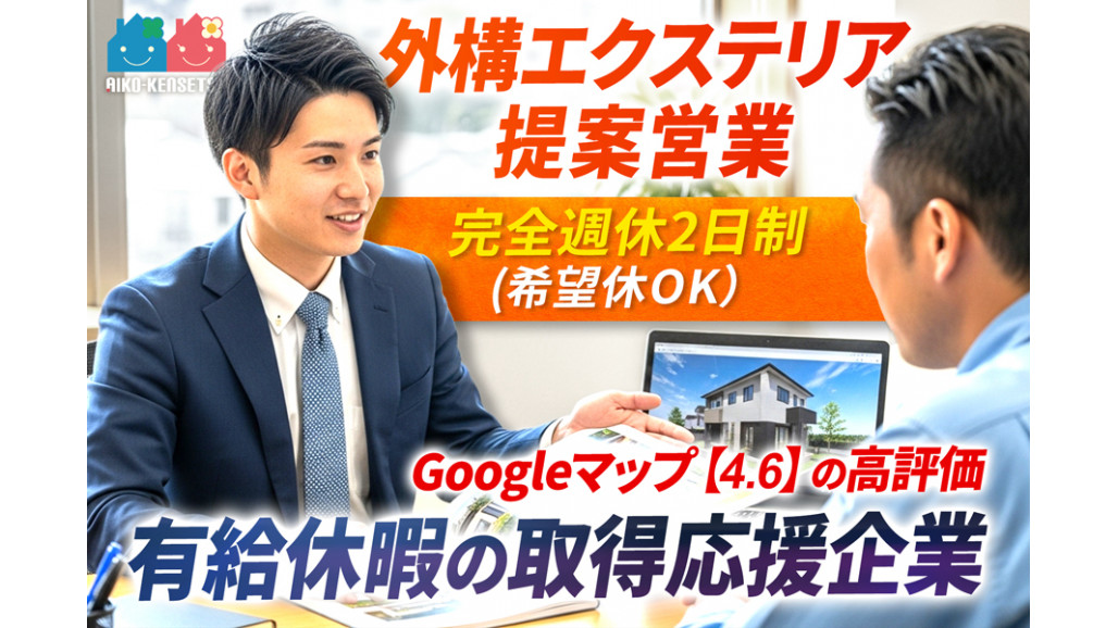 ― 空間を変える。その一提案で、暮らしが変わる。 ― カーポートも、門柱も、植栽も。どれも「ただの外構」では終わらせない。私たち【愛幸建設株式会社】は、住まいを完成させる「空間演出」のプロ集団です。 Googleマップでは【評価4.6】。「対応が丁寧」「仕上がりがきれい」と口コミが寄せられ、ハウスメーカー・工務店から厚い信頼を獲得。 確かな技術と誠実な対応が、私たちのブランドを支えています。 【当社のオススメPoint】 ・業績や成果に応じて賞与もUP ・年収600万円~700万円を想定 ・成果に応じて年収1000万円も可能です! ■具体的なお仕事内容 外構・エクステリア工事に関する提案営業をお任せします。ハウスメーカーや工務店など、既存のお客様を中心に、外構に関するプラン提案やスケジュール調整を行うキーポジションです。 ・お客様(法人)との打ち合わせ、ヒアリング ・図面や仕様をもとにした見積、プラン提案 ・職人、協力会社とのスケジュール調整 ・工事進行のフォロー、完工後の確認 ・既存顧客へのフォロー営業 【募集背景について】 愛幸建設は、多くのハウスメーカーや工務店からの絶大な信頼を獲得している外構・エクステリアの専門集団です。現在、組織の拡大に伴い、営業と現場をつなげられる経験者を募集しています。 【年収1000万円目指せます!】 営業として積み重ねてきた経験を、次のステージで正当に評価されたい。そんな想いを持つあなたへ――。 愛幸建設では、これまで培ってきた外構・エクステリアの提案力や現場理解を、成果として正しく還元する仕組みがあります。固定給に加え、賞与は年3回。結果を出した分だけ確実に収入に反映され、年収1,000万円を超える社員も実在。 「経験を活かして、収入もキャリアも伸ばしたい」――その願いを叶えられる環境です。 【求人ID-KNB】 |