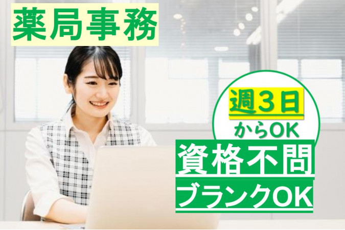 | 職種名 | 調剤薬局事務 1日3時間から可 |