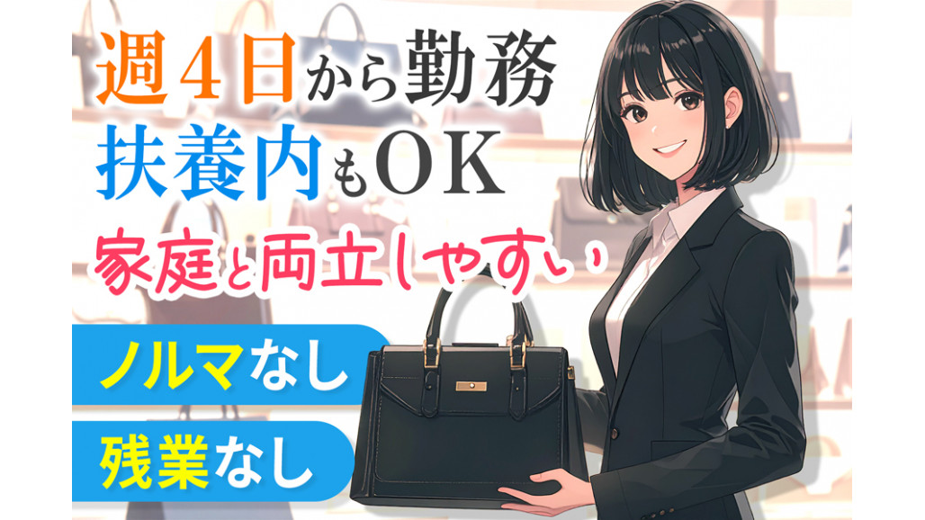 ・扶養内勤務可 ・交通費支給 ・無料駐車場あり ・正社員登用制度あり ・希望休制度あり ・営業手当あり |