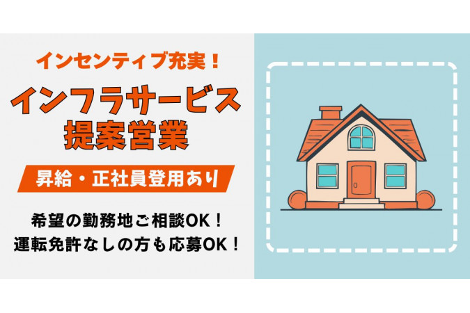 | 職種名 | 【未経験スタート多数活躍中】インセンティブ充実!月収30万も実現可能なインフラサービス提案営業! |