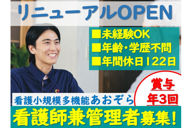 | 職種名 | 看護小規模多機能の看護師 兼 管理者 研修あり 未経験可 |