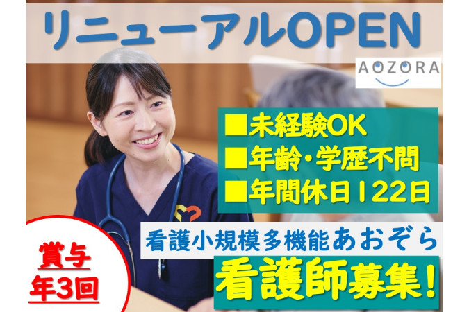 | 職種名 | 看護小規模多機能の看護師 研修あり 未経験可 |
