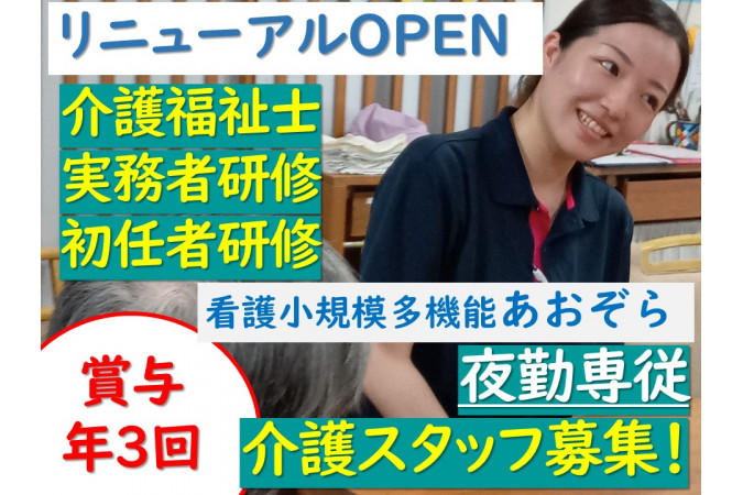 | 職種名 | 看護小規模多機能の介護職員 夜勤専従 年齢不問 |