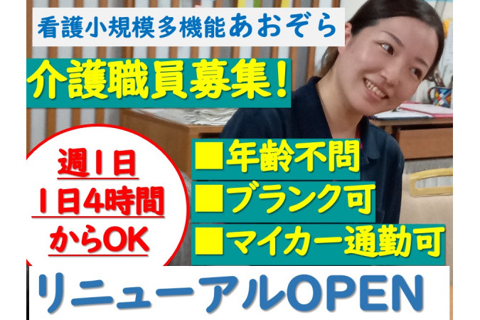 2026年8月に看護小規模多機能にリニューアルオープン! ■看護小規模多機能とは デイサービス・ショートステイ・訪問介護・訪問看護・居宅介護を一体で行う在宅サービスです。 ご利用者様の状態に合わせて関わり方を変えながら、顔なじみのチームで継続的に支援します。 ■具体的な仕事内容 【通所サービス】<最大15名> 自宅へお迎えにいき、施設の中で食事・入浴・トイレなどの介助やレクリエーション業務を行っていただきます。 【訪問】<1日最大6件> 近隣のご利用者様の自宅へ行き、掃除、洗濯などのサポートを行っていただきます。 ■未経験でも安心! 全国(複数拠点)に事業所を展開しているからこその、手厚い教育体制・本部からのサポート体制があります!ご自身に合わせたキャリアアップが可能です。 ■青空グループについて ホームページは 「青空 介護 神奈川県」 で検索ください。 【求人ID-AOK】 |