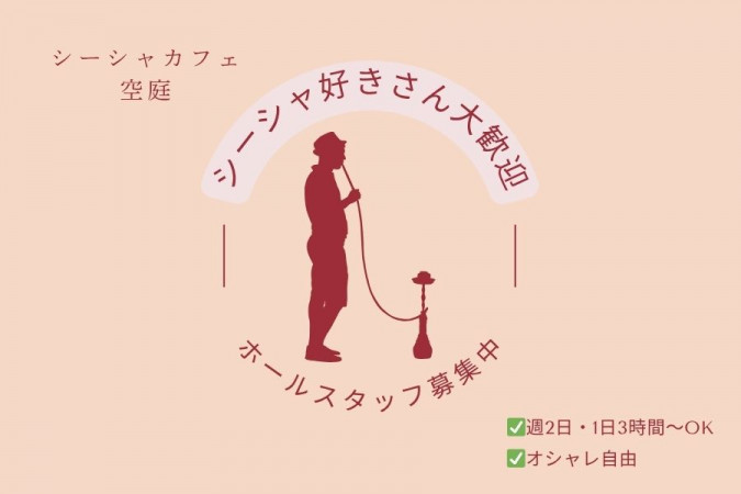 | 職種名 | テラス席があるシーシャカフェのホールスタッフ 未経験 学生必見 主婦・主夫必見 週2日・1日3時間~ Wワーク可 |
