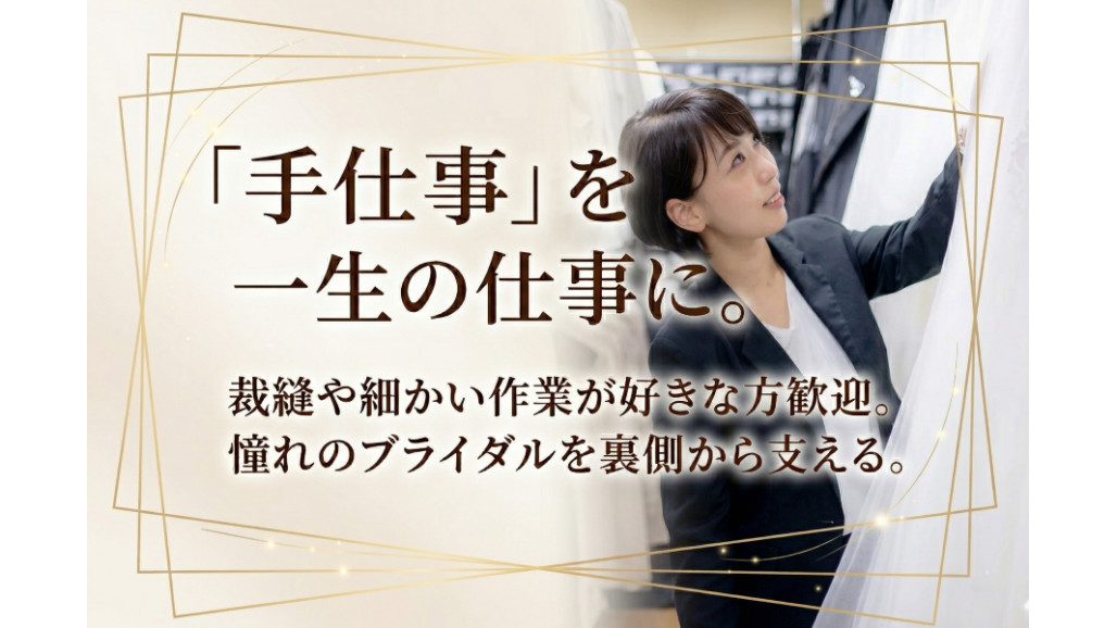 | 職種名 | ウェディングドレスのメンテナンススタッフ・完全週休2日 仕事復帰応援 |
