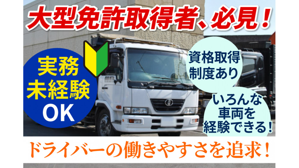 | 職種名 | 大手リサイクル会社での大型トラック運転手 資格取得支援制度あり 大型免許あれば未経験可 |