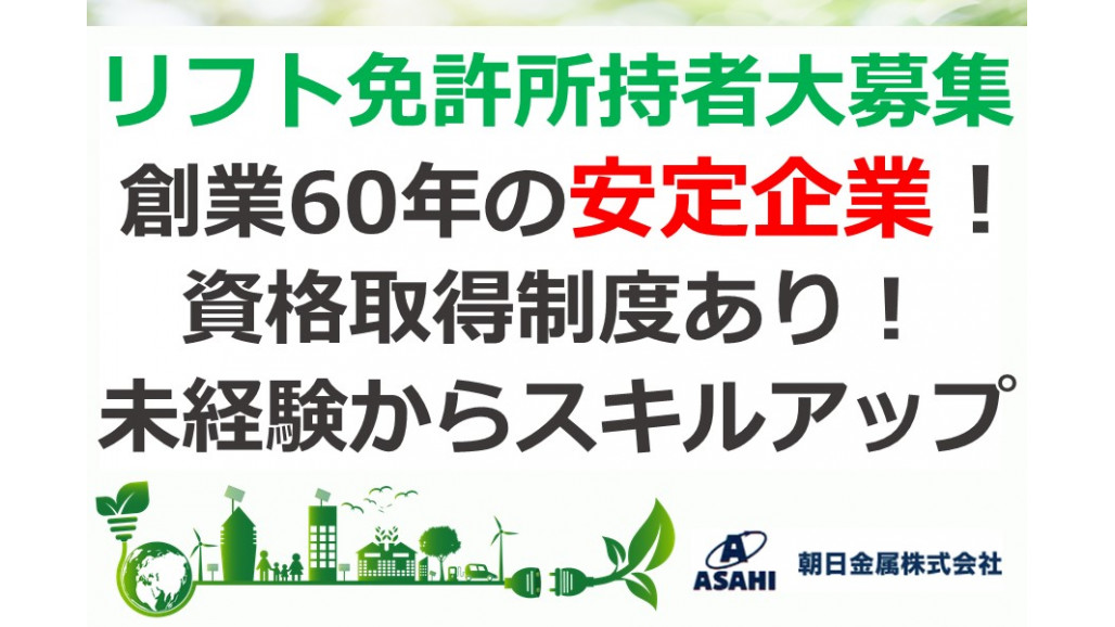\リサイクル工場でのリフト作業のお仕事です/ ✅この求人のポイント ・福利厚生充実! ・資格取得支援制度充実 ・前年度賞与実績2.8ヶ月 ✅朝日金属株式会社について 創業60年以上、鉄や非鉄金属スクラップの回収・選別して、再生資源としてリサイクルをしている安定企業!現在、約130名のドライバーが活躍し、200台のトラックを保有しています。 環境保全への関心の高まりとともに、リサイクル事業の需要が拡大中。将来性のある職場で安心して長く取り組んでいけます! 【お仕事内容】 ・リフト作業(積み下ろし、入出荷、選別) ・金属スクラップのリサイクル ・廃プラスチック、古紙、木材等の選別、解体 ・設備の維持管理、清掃作業など ============== 伸びしろは無限大! ============== 社員のほとんどは未経験からのスタート。 仲間育成プログラムで、丁寧にお教えします! これを機にフォークリフトデビューしませんか? 親身にサポートしますので、ご安心ください! ============== 安定企業で安定成長 ============== 若手社員も多く活躍しています!キャリア形成のため、20~30代の未経験の方も積極採用中です。 仕事の中で日々新しい発見や学びがありますので、成長を実感しながら働いていただけます。 あなたのご応募、心よりお待ちしています! 【求人ID-R-01】 |