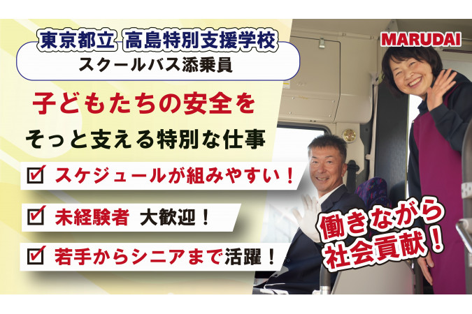 ■仕事内容 特別支援学校のバス添乗員として、生徒様を送迎補助していただきます! \4月運行開始に向けて、3月から準備スタート!/ ・【3月入社】まずは座学&先輩のコースでじっくり研修 ・3月に入社される方が多く、同じタイミングで始める「同期」がたくさんいる ・4月には全社研修もあり、他のエリアのスタッフとも関われる \特別支援学校のバス添乗員の働きやすさ/ ◇スケジュールが決まっている◇ 送迎スケジュールはもちろん、学校の予定に合わせてお休みも決まっています! ◇毎日同じルートで運行◇ 観光バスのような異なるルートはありません!一度覚えてしまえば楽々です! \現在募集中のルートはこちら/ ・高島特別支援学校 住所:東京都板橋区高島平3丁目7−2 お近くにお住まいの方は、バスポイント(要町駅・北池袋駅・池袋駅付近)でのピックアップも可能です。 ★バスポイント住所:東京都板橋区南町16-1★ ※マルエツ板橋南町店付近 ※最寄り駅(東京メトロ有楽町線要町駅 or 東武東上線北池袋駅・池袋駅) ■1日の流れ(例) (登校便) 7:00 各バス停を周り、生徒様を順番にお迎えします。 ↓ 9:00 学校に到着。生徒様を先生に引き渡します。 (下校便) 14:00 学校に到着。生徒様をお乗せし、各バス停を周ります。 ↓ 16:00 生徒様を全員送り届けたら送迎は終了です。営業所に帰庫します。 \スクールバスならではの休憩時間の使い方/ ◇休憩は5時間!使い方は自由!◇ ・ご自宅に帰って家事や趣味の時間に充てる ・平日昼でも役所や病院/歯医者へ ・布団を持ち込んでお昼寝 ・近くのスポーツジムでトレーニング ・Wワークで副業も自由 ■活かせる資格・経験 経験は一切問いません!どなたでも未経験からスタートできるお仕事です! 【福祉/保育に関わるお仕事の経験がある】 【福祉/保育系資格を持っているけれど今は活かせていない】 という方も大歓迎です! また生徒さんとの関わり方は学校と保護者の方が特性に合わせて決定します。 一人一人に向き合ってお仕事をしたいという方におすすめです! ■こんな方におすすめ ◇年齢を気にせず働きたい方◇ ・若年層から中高年シニアの幅広い世代が活躍中! ◇時間を確保したい方◇ ・決まったスケジュールで、家庭との両立をしやすい! ・夏休みや冬休みなど、お子様の休みに合わせた休暇をとれる! ◇好きなことに関わりたい方◇ ・生徒さんや親御さんの笑顔/成長を見届けられる! ・元保育士で子どもが好き、元看護士で誰かの力になりたいなあなたに! ◇地元が好きな方◇ ・転勤なく、地元で働き続けることができる! ・決まった近隣エリアのみの運行で、地域に密着! ■入社後の流れ <1日目> まずは座学や動画マニュアルで、業務内容をじっくりと理解していただきます。 ※状況に応じて、午後の下校便に実際に同乗し、業務を見学いただく場合もあります。 <2日目~6日目> 専任の指導員がサポートしますので、実際に業務をこなしながら、仕事に慣れていただきます。 <7日目以降~> 正式に添乗員として、現場での業務をお任せします。 ■働きやすい環境づくり ◇賞与は年2回支給◇ ◇転勤なし◇ 転居を伴う(県をまたぐ)異動は一切ありません!入社時に希望の拠点をお伝えください。 ■安全への取り組み 命を預かる事業者として安全性の向上へ日々取り組んでおります! ◇最新設備の導入◇ 最新の安全技術、PCS、VSC装備車両を随時導入して 走行状態を検知して危険を抑止しています。 ◇健康チェック◇ ドライバーの睡眠時無呼吸症候群の可能性を事前にチェックして 安全運行に役立てています! =================== 創業102年 ~大正生まれの実績と伝統ある企業です~ 長い歴史と伝統がある当社ですが、新しい風も常に取り入れています! 安全への取り組みも積極的! 風通しの良い職場なので ぜひあなたの意見などもどんどん聞かせてください。 一緒に「より良い会社」にしていきましょう! =================== \まずはお気軽にご応募ください/ ご経験の活かし方や、ライフスタイルに合わせた働き方などまずはご相談ください! 少しでも気になったら、ご応募をお待ちしております! ★リファラル採用実施中★ 知人や友人を紹介し、採用が決定すると、 紹介者に10,000円、入社者にも10,000円を支給します! |
