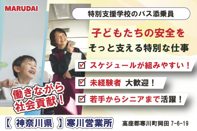■仕事内容 特別支援学校の通学バスサポートスタッフとして、生徒様をバス送迎補助していただきます! \特別支援学校の通学バスサポートスタッフの働きやすさ/ ◇スケジュールが決まっている◇ 送迎スケジュールはもちろん、学校の予定に合わせてお休みも決まっています! ◇毎日同じルートで運行◇ 観光バスのような異なるルートはありません!一度覚えてしまえば楽々です! \現在募集中のルートはこちら/ ・小田原支援学校 住所:神奈川県小田原市蓮正寺1021 お近くにお住まいの方は、運行ルート付近でのピックアップも可能です。 ■1日の流れ(例) (登校便) 7:00 各バス停を周り、生徒様を順番にお迎えします。 ↓ 9:00 学校に到着。生徒様を先生に引き渡します。 (下校便) 14:00 学校に到着。生徒様をお乗せし、各バス停を周ります。 ↓ 16:00 生徒様を全員送り届けたら送迎は終了です。営業所に帰庫します。 \スクールバスならではの休憩時間の使い方/ ◇休憩は5時間!使い方は自由!◇ ・ご自宅に帰って家事や趣味の時間に充てる ・平日昼でも役所や病院/歯医者へ ・布団を持ち込んでお昼寝 ・近くのスポーツジムでトレーニング ・Wワークで副業も自由 ■活かせる資格・経験 経験は一切問いません!どなたでも未経験からスタートできるお仕事です! 【福祉/保育に関わるお仕事の経験がある】 【福祉/保育系資格を持っているけれど今は活かせていない】 という方も大歓迎です! また生徒さんとの関わり方は学校と保護者の方が特性に合わせて決定します。 一人一人に向き合ってお仕事をしたいという方におすすめです! ■こんな方におすすめ ◇年齢を気にせず働きたい方◇ ・若年層から中高年シニアの幅広い世代が活躍中! ・さらに男女問わず活躍中! ◇時間を確保したい方◇ ・決まったスケジュールで、家庭との両立をしやすい! ・夏休みや冬休みなど、お子様の休みに合わせた休暇をとれる! ◇好きなことに関わりたい方◇ ・生徒さんや親御さんの笑顔/成長を見届けられる! ・元保育士で子どもが好き、元看護士で誰かの力になりたいなあなたに! ◇地元が好きな方◇ ・転勤なく、地元で働き続けることができる! ・決まった近隣エリアのみの運行で、地域に密着! ■入社後の流れ <1日目> まずは座学や動画マニュアルで、業務内容をじっくりと理解していただきます。 ※状況に応じて、午後の下校便に実際に同乗し、業務を見学いただく場合もあります。 <2日目~6日目> 専任の指導員がサポートしますので、実際に業務をこなしながら、仕事に慣れていただきます。 <7日目以降~> 正式に現場での業務をお任せします。 ※毎年春・夏と全社研修もあります!今年の夏研修は8月下旬に実施予定です。 ■働きやすい環境づくり ◇賞与は年2回支給◇ ◇転勤なし◇ 転居を伴う(県をまたぐ)異動は一切ありません!入社時に希望の拠点をお伝えください。 ■安全への取り組み 命を預かる事業者として安全性の向上へ日々取り組んでおります! ◇最新設備の導入◇ 最新の安全技術、PCS、VSC装備車両を随時導入して 走行状態を検知して危険を抑止しています。 ◇健康チェック◇ ドライバーの睡眠時無呼吸症候群の可能性を事前にチェックして 安全運行に役立てています! =================== 創業102年 ~大正生まれの実績と伝統ある企業です~ 長い歴史と伝統がある当社ですが、新しい風も常に取り入れています! 安全への取り組みも積極的! 風通しの良い職場なので ぜひあなたの意見などもどんどん聞かせてください。 一緒に「より良い会社」にしていきましょう! =================== \まずはお気軽にご応募ください/ ご経験の活かし方や、ライフスタイルに合わせた働き方などまずはご相談ください! 少しでも気になったら、ご応募をお待ちしております! ★リファラル採用実施中★ 知人や友人を紹介し、採用が決定すると、 紹介者に10,000円、入社者にも10,000円を支給します! |