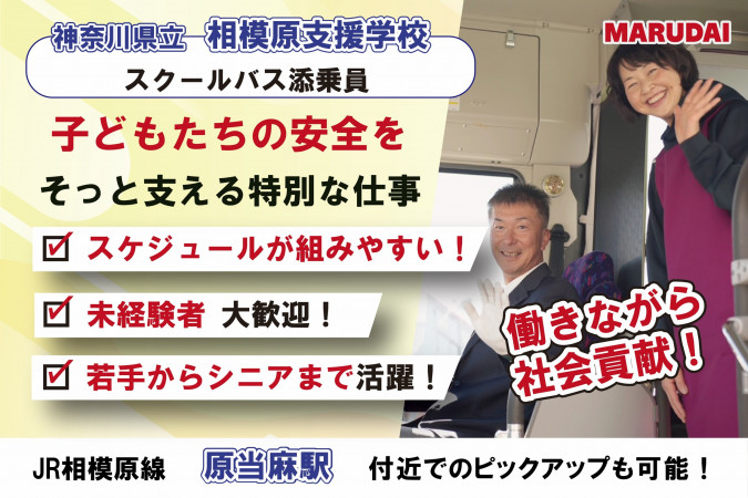■仕事内容 特別支援学校の通学バスサポートスタッフとして、生徒様をバス送迎補助していただきます! \特別支援学校の通学バスサポートスタッフの働きやすさ/ ◇スケジュールが決まっている◇ 送迎スケジュールはもちろん、学校の予定に合わせてお休みも決まっています! ◇毎日同じルートで運行◇ 観光バスのような異なるルートはありません!一度覚えてしまえば楽々です! \現在募集中のルートはこちら/ ・相模原支援学校 住所:〒252-0336 神奈川県相模原市南区当麻814 お近くにお住まいの方は、運行ルート付近(原当麻駅付近)でのピックアップも可能です。 ■1日の流れ(例) (登校便) 7:00 各バス停を周り、生徒様を順番にお迎えします。 ↓ 9:00 学校に到着。生徒様を先生に引き渡します。 (下校便) 14:00 学校に到着。生徒様をお乗せし、各バス停を周ります。 ↓ 16:00 生徒様を全員送り届けたら送迎は終了です。営業所に帰庫します。 \スクールバスならではの休憩時間の使い方/ ◇休憩は5時間!使い方は自由!◇ ・ご自宅に帰って家事や趣味の時間に充てる ・平日昼でも役所や病院/歯医者へ ・布団を持ち込んでお昼寝 ・近くのスポーツジムでトレーニング ・Wワークで副業も自由 ■活かせる資格・経験 経験は一切問いません!どなたでも未経験からスタートできるお仕事です! 【福祉/保育に関わるお仕事の経験がある】 【福祉/保育系資格を持っているけれど今は活かせていない】 という方も大歓迎です! また生徒さんとの関わり方は学校と保護者の方が特性に合わせて決定します。 一人一人に向き合ってお仕事をしたいという方におすすめです! ■こんな方におすすめ ◇年齢を気にせず働きたい方◇ ・若年層から中高年シニアの幅広い世代が活躍中! ・さらに男女問わず活躍中! ◇時間を確保したい方◇ ・決まったスケジュールで、家庭との両立をしやすい! ・夏休みや冬休みなど、お子様の休みに合わせた休暇をとれる! ◇好きなことに関わりたい方◇ ・生徒さんや親御さんの笑顔/成長を見届けられる! ・元保育士で子どもが好き、元看護士で誰かの力になりたいなあなたに! ◇地元が好きな方◇ ・転勤なく、地元で働き続けることができる! ・決まった近隣エリアのみの運行で、地域に密着! ■入社後の流れ <1日目> まずは座学や動画マニュアルで、業務内容をじっくりと理解していただきます。 ※状況に応じて、午後の下校便に実際に同乗し、業務を見学いただく場合もあります。 <2日目~6日目> 専任の指導員がサポートしますので、実際に業務をこなしながら、仕事に慣れていただきます。 <7日目以降~> 正式に現場での業務をお任せします。 ※毎年春・夏と全社研修もあります!今年の夏研修は8月下旬に実施予定です。 ■働きやすい環境づくり ◇賞与は年2回支給◇ ◇転勤なし◇ 転居を伴う(県をまたぐ)異動は一切ありません!入社時に希望の拠点をお伝えください。 ■安全への取り組み 命を預かる事業者として安全性の向上へ日々取り組んでおります! ◇最新設備の導入◇ 最新の安全技術、PCS、VSC装備車両を随時導入して 走行状態を検知して危険を抑止しています。 ◇健康チェック◇ ドライバーの睡眠時無呼吸症候群の可能性を事前にチェックして 安全運行に役立てています! =================== 創業102年 ~大正生まれの実績と伝統ある企業です~ 長い歴史と伝統がある当社ですが、新しい風も常に取り入れています! 安全への取り組みも積極的! 風通しの良い職場なので ぜひあなたの意見などもどんどん聞かせてください。 一緒に「より良い会社」にしていきましょう! =================== \まずはお気軽にご応募ください/ ご経験の活かし方や、ライフスタイルに合わせた働き方などまずはご相談ください! 少しでも気になったら、ご応募をお待ちしております! ★リファラル採用実施中★ 知人や友人を紹介し、採用が決定すると、 紹介者に10,000円、入社者にも10,000円を支給します! |