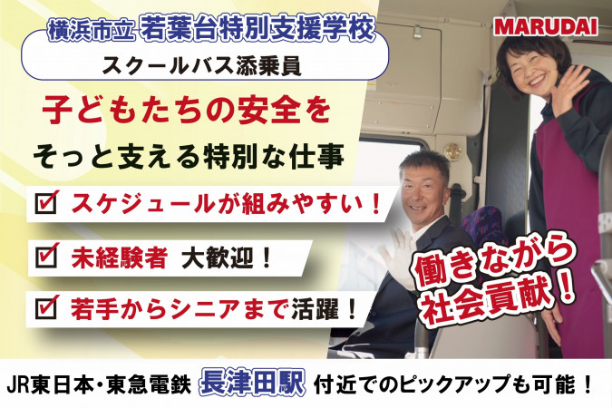 ■仕事内容 特別支援学校の通学バスサポートスタッフとして、生徒様をバス送迎補助していただきます! \特別支援学校の通学バスサポートスタッフの働きやすさ/ ◇スケジュールが決まっている◇ 送迎スケジュールはもちろん、学校の予定に合わせてお休みも決まっています! ◇毎日同じルートで運行◇ 観光バスのような異なるルートはありません!一度覚えてしまえば楽々です! \現在募集中のルートはこちら/ ・横浜市立若葉台特別支援学校 住所:神奈川県横浜市旭区若葉台2丁目1−1 お近くにお住まいの方は、運行ルート付近(光が丘駅付近)でのピックアップも可能です。 ■1日の流れ(例) (登校便) 7:00 各バス停を周り、生徒様を順番にお迎えします。 ↓ 9:00 学校に到着。生徒様を先生に引き渡します。 (下校便) 14:00 学校に到着。生徒様をお乗せし、各バス停を周ります。 ↓ 16:00 生徒様を全員送り届けたら送迎は終了です。営業所に帰庫します。 \スクールバスならではの休憩時間の使い方/ ◇休憩は5時間!使い方は自由!◇ ・ご自宅に帰って家事や趣味の時間に充てる ・平日昼でも役所や病院/歯医者へ ・布団を持ち込んでお昼寝 ・近くのスポーツジムでトレーニング ・Wワークで副業も自由 ■活かせる資格・経験 経験は一切問いません!どなたでも未経験からスタートできるお仕事です! 【福祉/保育に関わるお仕事の経験がある】 【福祉/保育系資格を持っているけれど今は活かせていない】 という方も大歓迎です! また生徒さんとの関わり方は学校と保護者の方が特性に合わせて決定します。 一人一人に向き合ってお仕事をしたいという方におすすめです! ■こんな方におすすめ ◇年齢を気にせず働きたい方◇ ・若年層から中高年シニアの幅広い世代が活躍中! ・さらに男女問わず活躍中! ◇時間を確保したい方◇ ・決まったスケジュールで、家庭との両立をしやすい! ・夏休みや冬休みなど、お子様の休みに合わせた休暇をとれる! ◇好きなことに関わりたい方◇ ・生徒さんや親御さんの笑顔/成長を見届けられる! ・元保育士で子どもが好き、元看護士で誰かの力になりたいなあなたに! ◇地元が好きな方◇ ・転勤なく、地元で働き続けることができる! ・決まった近隣エリアのみの運行で、地域に密着! ■入社後の流れ <1日目> まずは座学や動画マニュアルで、業務内容をじっくりと理解していただきます。 ※状況に応じて、午後の下校便に実際に同乗し、業務を見学いただく場合もあります。 <2日目~6日目> 専任の指導員がサポートしますので、実際に業務をこなしながら、仕事に慣れていただきます。 <7日目以降~> 正式に現場での業務をお任せします。 ※毎年春・夏と全社研修もあります!今年の夏研修は8月下旬に実施予定です。 ■働きやすい環境づくり ◇賞与は年2回支給◇ ◇転勤なし◇ 転居を伴う(県をまたぐ)異動は一切ありません!入社時に希望の拠点をお伝えください。 ■安全への取り組み 命を預かる事業者として安全性の向上へ日々取り組んでおります! ◇最新設備の導入◇ 最新の安全技術、PCS、VSC装備車両を随時導入して 走行状態を検知して危険を抑止しています。 ◇健康チェック◇ ドライバーの睡眠時無呼吸症候群の可能性を事前にチェックして 安全運行に役立てています! =================== 創業102年 ~大正生まれの実績と伝統ある企業です~ 長い歴史と伝統がある当社ですが、新しい風も常に取り入れています! 安全への取り組みも積極的! 風通しの良い職場なので ぜひあなたの意見などもどんどん聞かせてください。 一緒に「より良い会社」にしていきましょう! =================== \まずはお気軽にご応募ください/ ご経験の活かし方や、ライフスタイルに合わせた働き方などまずはご相談ください! 少しでも気になったら、ご応募をお待ちしております! ★リファラル採用実施中★ 知人や友人を紹介し、採用が決定すると、 紹介者に10,000円、入社者にも10,000円を支給します! |