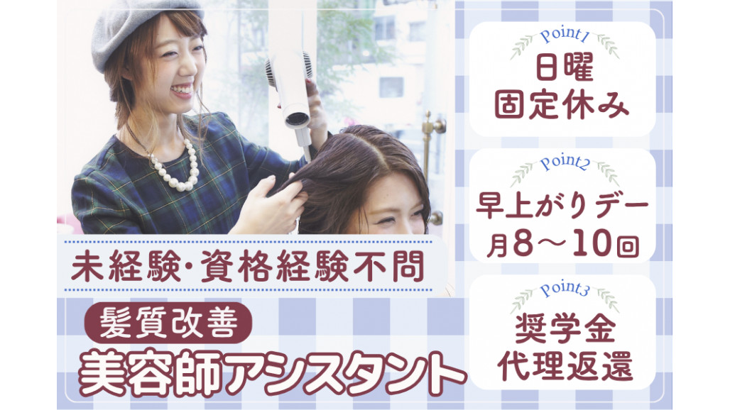 | 職種名 | ヘアサロン アシスタント・奨学金代理返還制度 無資格OK 資格取得支援 |