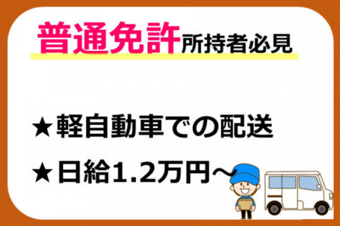 大手デリバリーの企業向けお弁当等の配送 【PRポイント】 ■運転中は1人で気楽に働ける! ■普通免許でOK!軽自動車での配送 【具体的な仕事内容】 軽自動車による ・食品配送 ・お弁当等の配送 【配送エリア】 都内及び近郊への配送となります。 ================ 普通免許でOK!軽自動車での配送 ================ 運転は好きだけどトラックとかは自信がない……なんて方にピッタリ!軽自動車でのルート配送です! 荷物も軽いものが多く、体への負担は少なめです!Wワークや家庭との両立も気軽にできますよ! |