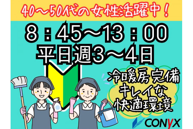 ⭕冷暖房完備で、清潔感のある快適な環境! 【主な仕事内容】 ✅トイレ清掃 ✅通路・共有部の床清掃 (掃除機での除塵、水モップでの拭き掃除) ✅テラスの清掃 (ほうきでの拾い掃き) ✅屋外の簡単な清掃 (落ち葉掃きなど/短時間のみ) シンプルな作業なので、 未経験の方もすぐに慣れていただけます! 体を適度に動かしながら働けるので、 運動不足解消にもぴったりのお仕事です! ===================== 充実したサポートが自慢です ===================== 創業70年以上のコニックスだからこそ、 働くスタッフへのフォロー体制は抜群です! ⭐覚えられるまで丁寧にしっかりとサポート! ⭐必要時には担当スタッフがすぐにフォロー! ⭐お休みも取りやすい環境です! 【求人ID-CRN06A】 |