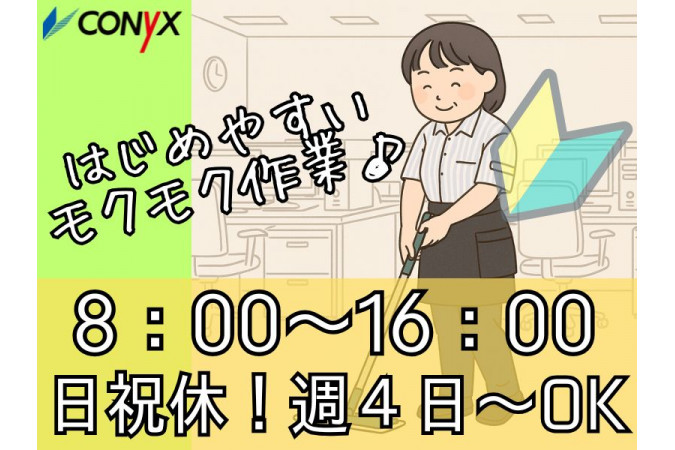 職種名 大学の清掃 平日)8:00~16:00、土曜)8:00~14:30 週4~ 土曜日も勤務できる方優遇