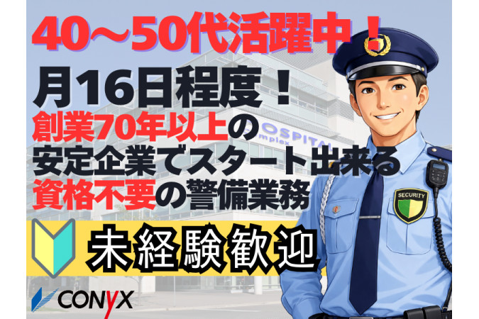 体力少なめ巡回・シフト融通◎創業70年大手で安心スタート! ▶未経験OK ▶月16日程度 ▶優遇:雑踏警備経験者 八千代病院の夜間警備スタッフ募集中! 安城にあるきれいな総合病院です✨ 【主な仕事内容】 ✅病院敷地内の巡回・施錠・立哨 ✅緊急時の初期対応(火災報知器、警報監視、応急処置対応) ※緊急対応の際、職員寮まで自家用車で向かって頂く場合があります(車で5分程度の距離) など、未経験でも始められるお仕事です。 業務につきましては、研修時に丁寧にお伝えしますので初心者の方でも大丈夫です。 \資格取得できます!/ 入社後に会社負担で警備員の資格を取得して頂きます。 充実サポートで未経験の方でも負担なく取得できます! 【オススメポイント】 ■警備員の資格支援!入社後に会社負担で取得して頂きますので、未経験の方も大歓迎です。 /コ/ニ/ッ/ク/ス/の/強/み/ 創業70年以上、ビルマネジメント業界のパイオニア企業です。 有名病院・商業施設を多数手掛ける当社。 スタッフの皆さんへの研修に力を入れており、サービス品質の高さを評価され、 多くの有名施設を手掛ける実績があります。 【求人ID-KEB07A】 |