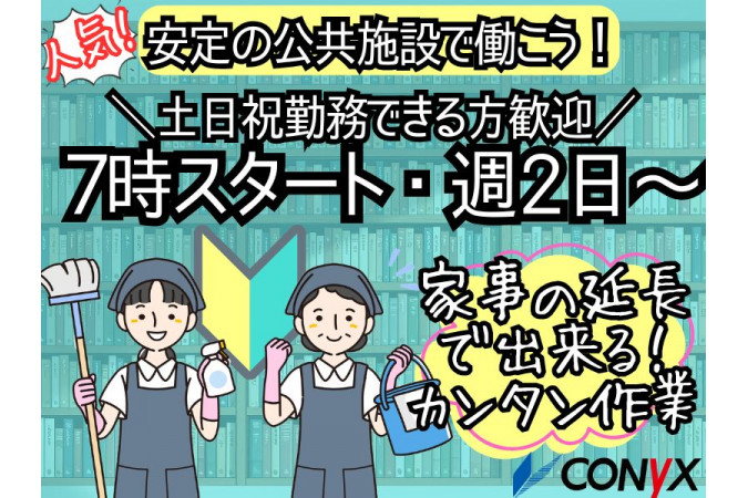 \公共施設(博物館・図書館)内でのカンタンな日常清掃/ 【お仕事内容】 ✅ 事務所内の清掃 ✅ トイレ清掃 ✅ 廊下・通路の清掃 ✅ 閲覧室の清掃 ✅ 展示エリアの清掃 など 難しい作業や機械の操作なし! 家事の延長でできるモクモク作業です。 ===================== 充実したサポートが自慢です ===================== 創業70年以上のコニックスだからこそ、 働くスタッフへのフォロー体制は抜群です! ⭐覚えられるまで丁寧にしっかりとサポート! ⭐必要時には担当スタッフがすぐにフォロー! ⭐お休みも取りやすい環境です! 【求人ID-CRN08A】 |