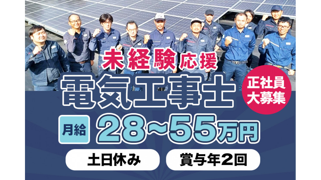 《必須》普通自動車免許(AT限定可) ★未経験応援 ★電気工事系の資格がなくてもOK! ☆太陽光発電の現場経験者優遇 |
