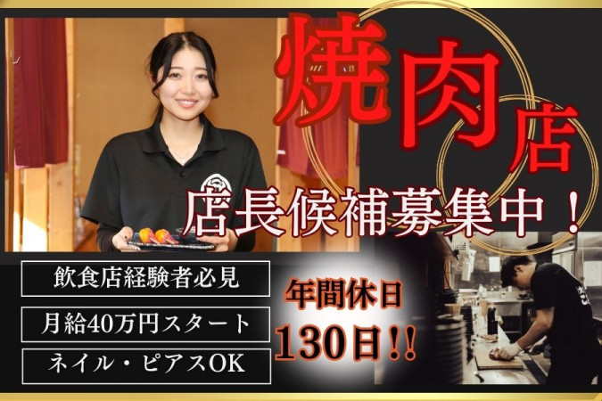 | 職種名 | 店長候補必見 インスタ映えの焼肉店ホールスタッフ 交通費支給 研修制度あり 髪型・髪色・ネイル自由 |