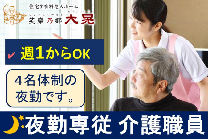 | 職種名 | 夜勤スタッフ(介護職員) 週1日から可 有料老人ホーム |