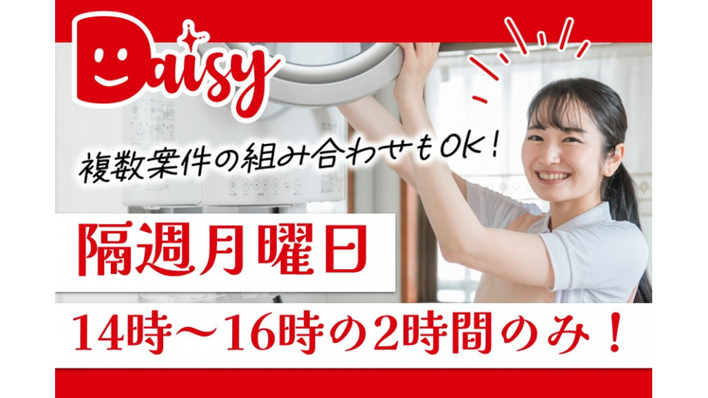 東京都中央区の個人宅にて、家事代行スタッフさんを募集しています。 【具体的なお仕事内容】 ご夫婦二人暮らしの個人宅(マンション)のお掃除をお願いします。 ・水回りの掃除 ・食器洗い ・掃除機掛けと床拭き(リビング、寝室) ・寝具の整え ・玄関の拭き掃除 ・ごみ捨て ■時給1,500円~ ■隔週月曜日(第2・4)14~16時の2時間 ■フォロー体制万全 ■家事スキルが活かせる ■案件豊富で希望に合わせて働ける! ----------------------------------- 希望に合わせた働き方が可能です ----------------------------------- 週1回、1日2時間から勤務OKです。他の訪問先との掛け持ちなどもできるので、お気軽にご相談くださいね。 「扶養控除内で週5日働きたい」「曜日により働く量を調整したい」「最初は週1回からスタートして、慣れてきたら増やしていきたい」など、ご自身に合った働き方ができますよ。 ------------------------------------ お客様とのやりとりは本部が対応 ------------------------------------ 直接雇用のお仕事のため、万が一トラブルが起きた際もすべて本部が対応します。確定申告も本部が行うため、複雑な事務処理などで困ることもありません。 また、入社時に座学研修やマンツーマンでの実地研修、サービス同行など、しっかりしたサポート体制が整っているので未経験の方やブランクのある方も安心してスタートできます。 安心してお仕事に取り組んでいただけるように、サポート体制を整えています! 【デイジーの家事代行サービス】 個人宅にて、お忙しいお客様に代わって日常の家事を代行します。 慣れ親しんだ家事ばかりなので久しぶりのお仕事の方でも安心です! お仕事によって、お掃除だけ、お料理中心、など色々あるのでお気軽にご相談ください。 「もう少し詳しくお話を聞いてみたい」というお問合せでももちろん大歓迎です! ぜひお気軽にご連絡くださいね。 【求人ID-TKO】 |