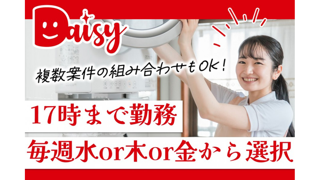 ✅時給1,500円~ ✅フォロー体制万全 ✅案件豊富で希望に合わせて働けます! ✅平日昼間勤務で主婦活躍中! ✅お掃除のみ、お料理のみでもOK! 東京都練馬区の個人宅にて、家事代行スタッフさんを大募集! 毎週お料理3時間、お掃除3時間です! どちらかのみ、両方を1日で、両方を別の曜日でなどご希望をお聞かせください♪ お客様が17:00に帰宅されますので帰宅後に退室できる時間でお伺いします✨ ※14:00ー17:00(3時間)、11:00ー17:00(6時間)など ⭐デイジーの家事代行サービス⭐ ご依頼いただいたお客様のご自宅を訪問し、家事全般をお願いします。 作業範囲は、依頼主の自宅の掃除から料理の作り置きとさまざま。1日1件からでもOK! 空き時間を活かして働くことができます! ⭐Q&A⭐ 1.どんなお客様が多いの? デイジーのお仕事は、定期サービスのお客様が90%以上。 ご在宅のお宅とご不在のお宅は半分半分くらいです。 色んな世代のお客様がみえますが、お忙しいファミリー層のお客様が比較的多いです。 2.マッチングサービスとの違いは? デイジーは、直接雇用でデイジーのスタッフとしてお勤め頂きます。 サイト上でのお客様とのやりとりや、確定申告などの面倒は一切ナシ。 トラブルの際も全て本部が対応するので安心です! 3.未経験でも大丈夫? デイジーでは、入社時に座学研修+マンツーマンでの実地研修、サービス同行など、しっかりしたサポート体制が整っているので未経験の方、久しぶりのお仕事の方にも安心してお仕事して頂ける環境が整っています。 本部とスタッフさんの距離もとても近いので、なんでもご相談ください。 ちょっと話を聞いてみたい、もOK! ご自宅から気軽にご参加頂ける、スマホ説明会も受付中です! 悩まれている方も、ぜひ一度ご連絡ください。 【求人ID-TKO】 |