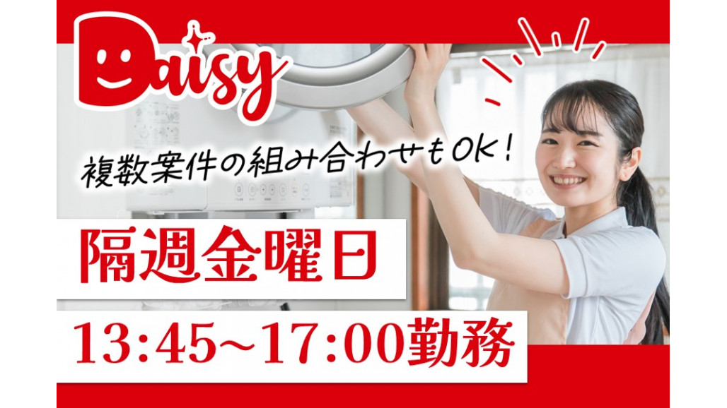 / おうちがきれいになると 気持ちまでスッキリするのね。 本当にありがとう! \ そんな一言に、 「また頑張ろう」と思える毎日です。 あなたの手がけた掃除や整理、 お料理のひと手間が、 誰かの心に余裕と笑顔を届けています。 「ただの家事」ではありません。 大切な暮らしをそっと支える、 誰かの安心と元気をつくるお仕事です。 きれい・整う・ほっとする―― あなたの得意が、誰かの幸せになります。 あなたの優しさと丁寧さを、 待っている人がいます。 人を支えることに喜びを感じる方、 介護・福祉・保育などの異業種からの転職者も多数! ✅時給1,500円~ ✅フォロー体制万全 ✅案件豊富で希望に合わせて働けます! ✅平日昼間勤務で主婦活躍中! ✅月2日、1日2時間~OK 春日井市六軒屋町のオフィスと近くのご自宅でのお掃除 ■隔週金曜日13:45ー14:45(オフィス) → 15:00ー17:00(個人宅) ※曜日や時間の変更はご相談ください♪ お願いしたい主な作業内容 ・水回り掃除 ・お部屋のホコリ取り ・キッチン回りとシンクの掃除 ・掃除機掛け ・土間掃き ・その他気になった個所をお掃除 お客様宅の駐車場を利用できるので雨の日でも通勤らくらくです✨ 個人宅の方にはかわいい猫ちゃんもいますよ♪ 動物好きのかた大歓迎✨ 先輩スタッフからしっかりと引継ぎますので初めてでもご安心ください^^ 【デイジーのお掃除代行スタッフ】 主婦のお仕事として人気急上昇中! 1件2~3時間、時間単位でお仕事や育児にお忙しいお客様に代わって、日常のお掃除をはじめ、お洗濯・お料理などの家事を代行するお仕事です。 直行直帰なので、通いやすいエリアで勤務が可能!車通勤希望、家から〇分以内、お掃除案件のみOK,などご希望を出していただきます。 お掃除道具は基本的にお客様のお宅のものをお借りするので、電車通勤でもラクラク! ほとんどの方が未経験でスタートしますが、日常的な家事なので、皆さんすぐに慣れて長く働いて頂いています。 主婦経験を活かしてお小遣い稼ぎ、そしていつもの家事でありがとうがもらえる、とってもやりがいのあるお仕事です! 【一般的なお仕事内容】 ~お掃除編~ お客様のお宅の掃除道具をお借りして、ホコリ取りや掃除機がけ、水回り(キッチン・お風呂・トイレなど)のお掃除や整理整頓などを行います。研修でキレイに見えるコツをお伝えします! ~お料理編~ 食材やお料理のお好み、何人分か、ご家族構成など事前にヒアリング。お買い物・お料理・後片付けなどを行います。ご提供するのは一般的な家庭料理です。お口に合うかな?と不安かもしれませんが、大丈夫。定期的にお伺いするお宅が多いので、味付けや量のお好みなど、少しずつすり合わせしていってもらえればOKです。 ~お洗濯編~ 洗濯機をかけたり、洗濯物を干したり、取り込んで畳んだり、アイロンをかけたり。一般的なおうちでのお洗濯を行います。 ■■■■このお仕事のPOINT■■■■ POINT① 短時間・高時給で効率よくお仕事できる 案件は1件2~3時間が多いので、少しだけ働きたい、という方にもピッタリ! 時間制のサービスなので思わぬ残業が発生、ということもありません。 地域最高時給のデイジーなら、短い時間でも効率よくお小遣い稼ぎ! たくさん働きたい方は1日2件・3件掛け持ちも可能です。 POINT② 家庭と両立しやすい シングルマザーの方、久しぶりのお仕事の方、子育てママさん、ダブルワークの方も多数活躍中! 女性が活躍する社会をつくりたい、という想いで創られた会社だから、働く女性の気持ちにもしっかり寄り添います。 お子さんの急な熱やご家庭の事情で急にお休みしなければいけない時もしっかりフォローするので安心してくださいね。 長く安心してお仕事できる環境です。 POINT③ お仕事選べる~案件多数~ 地域密着30年のデイジーなら、名古屋市及び近郊に案件いっぱい! 登録会の際に、ヒアリングシートをご記入頂き、場所・お仕事内容・曜日や時間帯・通勤時間など、あなたのご希望を細かくしっかりお伺いした上でお仕事をご紹介します。 「お掃除はスキだけどお料理はちょっと」 「お料理の腕を活かしたい!」 「車で通勤したい」 「小さいお子さんがいるお宅がいいな」 「家事は好きだけどアイロンは苦手で」 「久しぶりのお仕事なのでまずは週1から、慣れたら少しずつ増やしたい」 などなどざっくばらんにご希望お聞かせください。 POINT④ 教育プログラムと手厚いフォローで未経験でも安心 デイジーは、ただ紹介するだけ、の家事代行会社ではありません。 座学研修→研修施設での実地研修→担当案件への同行・個別アドバイスとゼロから丁寧に教えます。 POINT⑤ あなたの頑張りをしっかり評価! デイジーでは半年に1回、本部全員でスタッフさんの評価会議を実施。 頑張ったらしっかり評価・昇給します! POINT⑥ 経験者も大満足 「他社に登録しているけどお仕事が全然紹介してもらえない」 「自己流でやってるけど喜んで頂けるサービスができているのか不安」 「本部がほった