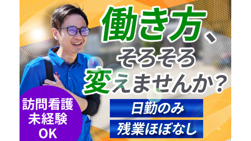 | 職種名 | 「大阪府吹田市」訪問看護師 完全週休2日制 昇給・賞与あり |