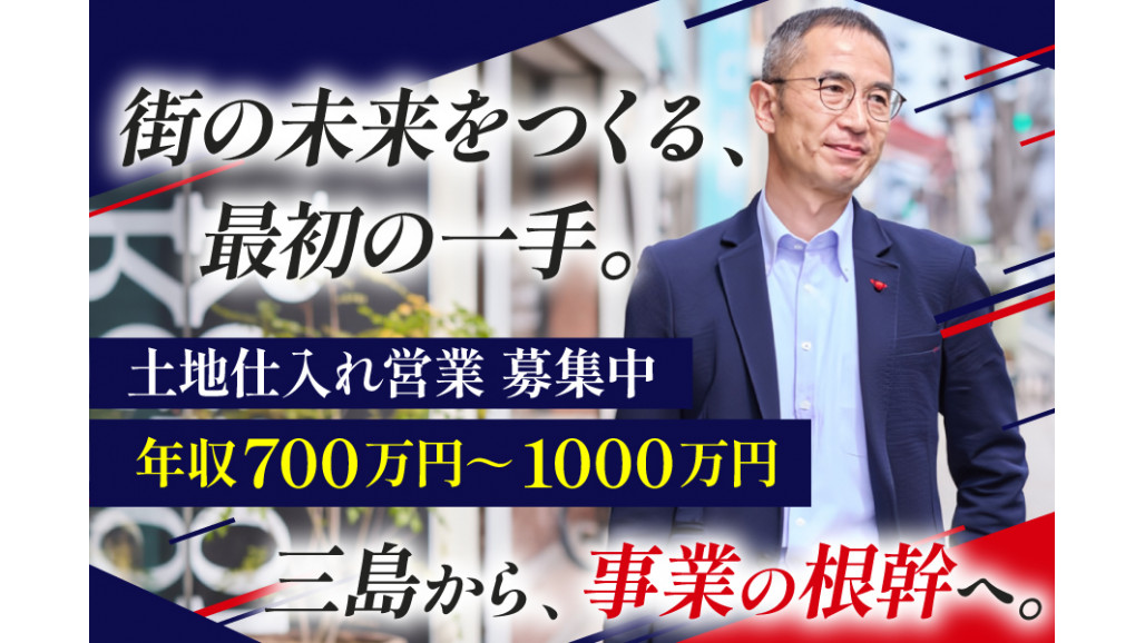 | 職種名 | 戸建住宅用地仕入れ担当(営業職) /年収700万円~/経営層直下のコアメンバー/裁量権大/三島から静岡東部の街づくりをリード |