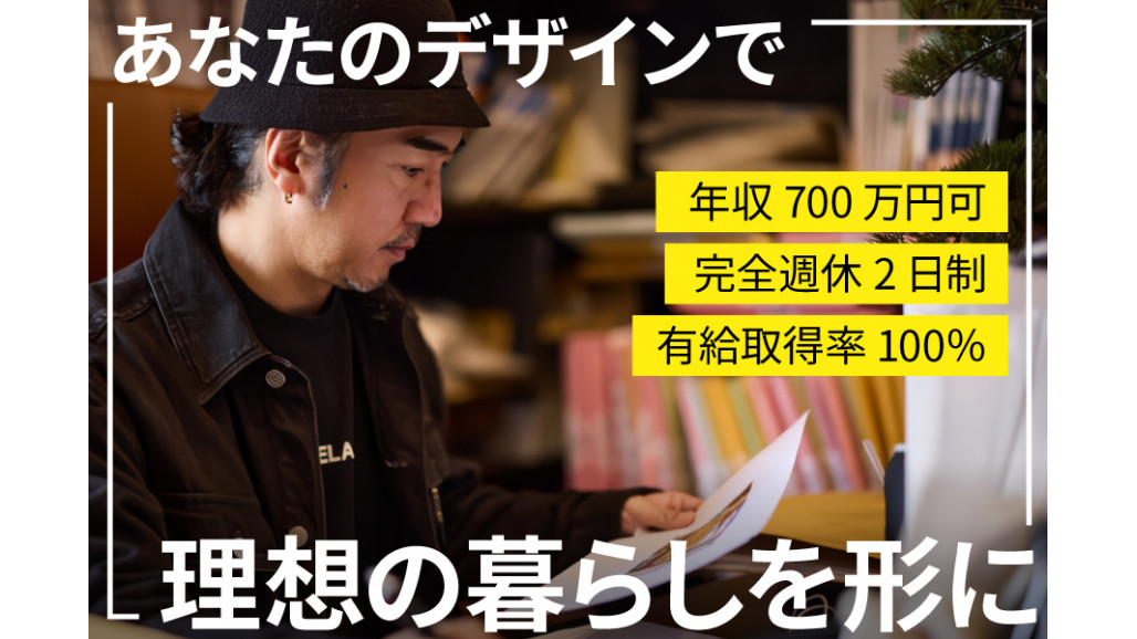 | 職種名 | 新築住宅設計デザイナー(インテリア起点) 完全週休2日制 有給休暇取得応援企業 長期休暇あり |