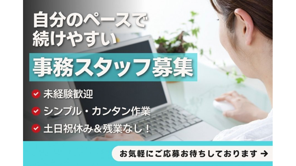 | 職種名 | シンプル業務の一般事務 正社員 定時前退勤可 土日祝休み 未経験可 簡易的なデータ入力 |