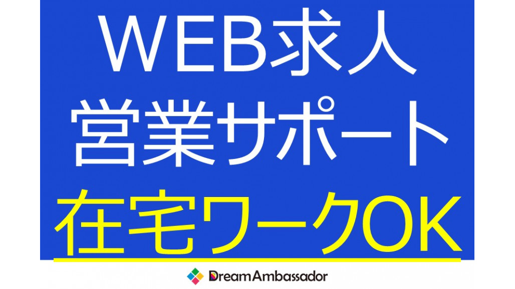| 職種名 | Web求人の営業サポート フル在宅ワーク可 |