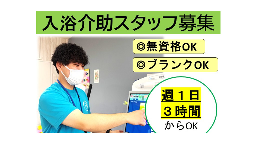 | 職種名 | 入浴介助スタッフ 週1日から可 ブランク可 |