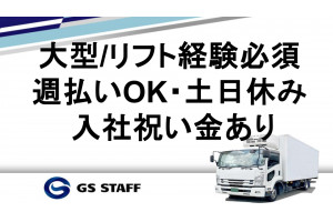 大型トラックで常温雑貨の配送ドライバー 前払い有り 土日休み 長…