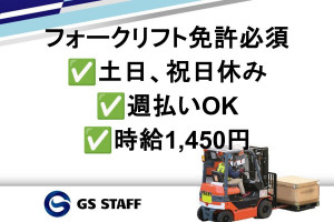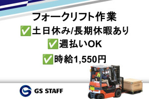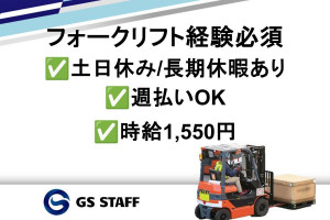 フォークリフトを使った入出荷作業 ✅週払い可能! ✅時給1,550円! …