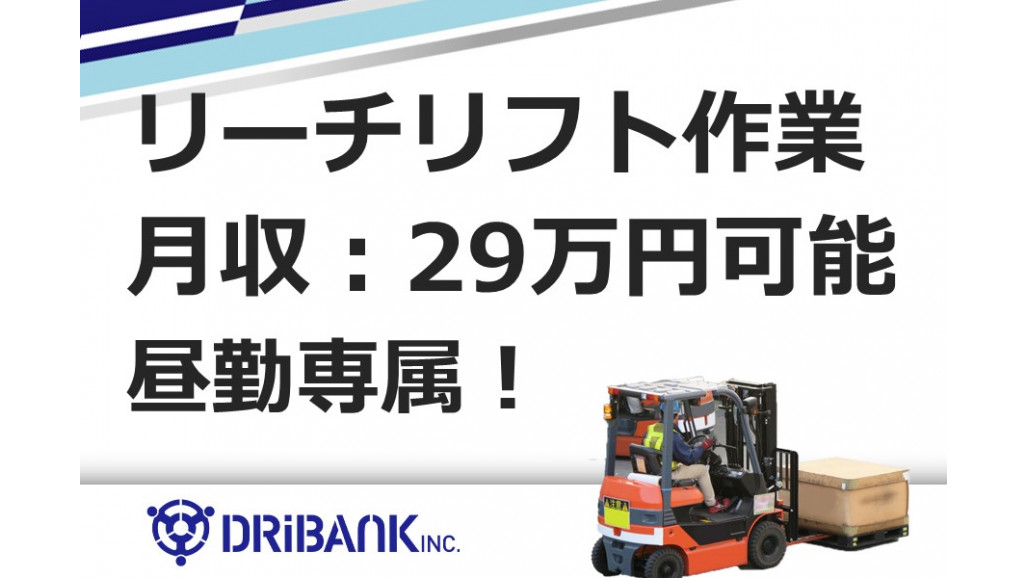 【必要な資格・経験】 ・フォークリフト運転技能講習修了 ・リーチリフトの実務経験をお持ちの方 ※見学の際にリーチリフトの乗車テストあり |