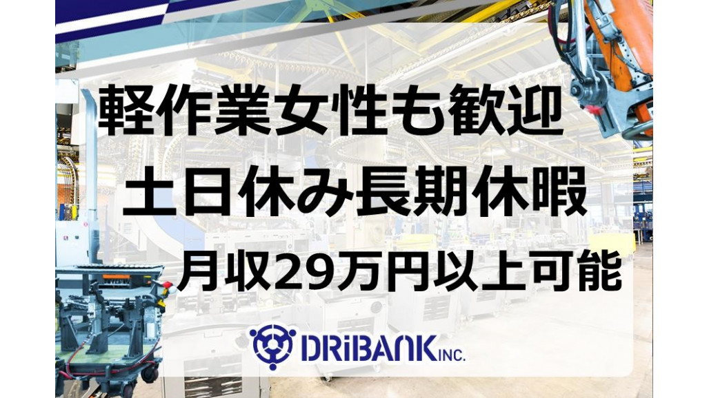| 職種名 | 自動車部品の仕分け作業 簡単仕分け作業 土日休み 軽作業 |