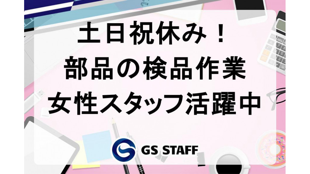 | 職種名 | 飛行機部品の検査・検品スタッフ 力仕事なし 検品作業 土日祝休み |