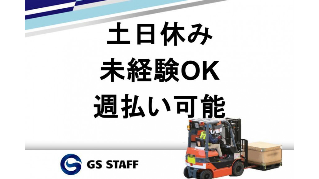 | 職種名 | 自動車部品の入出荷作業を補助 倉庫内作業 土日休み 時給1,260円 週払いOK! |