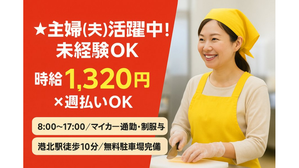 【即!週払いOK!】 入社して1週間の勤務から申請OK! 最短で翌日に振込まれます。 【PRポイント】 ⭕️10名以上の当社社員が在籍! ⭕️フルタイム勤務可能! ⭕️経験がなくても始められる! ===================== 【仕事内容】 大手スーパーの食材カットセンターで食材のカットや、カットした食材の袋詰めを行って頂くお仕事です。 ⭕️8時~10時ごろ 主にカットの作業になります。 茄子やじゃがいも、ピーマンなどの食材を操作が簡単な機械をつかったり、包丁をつかったりしてカットして頂きます。 ⭕️10時~12時 カットが終わった食材を洗浄後、重さを測りながら袋詰めをして頂きます。 ⭕️13時~15時ごろ 袋詰めが終わった食材を他の食材と組み合わせて、「にくじゃがセット」や「筑前煮セット」などのお惣菜セットを作って頂く作業になります。 ⭕️15時~17時 お惣菜セットの作業が終わったら、片付けや掃除、食材の在庫チェックや次の日の準備などを行って頂きます。 作業を行う現場環境は8~10度くらいの冷蔵室になっておりますが、実際に働いているスタッフさんによると、風が吹かないので思ったよりも快適とのことです。 基本的には面接後にそのまま現場見学に行くことも多いので、その際に体感して頂ければと思います。 【職場環境について】 この職場は60%が40代・50代の主婦の方々です。 もちろん20代・30代男女も活躍しています。 ================== ドライバンクはココが違う! ================== ①現場経験者だからこそ、気持ちが分かります! ⏩️社長を含め全員が現場の経験者。 働く現場の楽しさや厳しさを知っているからこそ、的確にアドバイスできます! ②人材育成に情熱を注ぐ、人を大切にする派遣会社! ⏩️私たちはスタッフさんを大切な社員として考え、長期的な働き方や仕事のコツ、研修や資格取得まで、あらゆる面でフルサポートします。 ③あなたの悩み、聞かせてください! ⏩️私たちは一人ひとりに向き合う会社です。 どんな事でもご相談ください。 一緒に解決策を見つけましょう! 【求人ID-KK001】 |